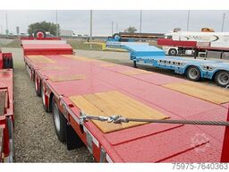 Semirremolque de cama baja Ceylan, nuevo de fábrica, 3 ejes con el 1º elevable y el 3º direccional, ABS, plataforma inferior de 10 m de longitud x 85 cm de altura desde el suelo, longitud total 13,70 m, estacas laterales, extensores laterales, ganchos RUD de 10 toneladas cada uno, rampas dobles de ancho completo electrohidráulicas, preinstalación para cabrestante eléctrico, GARANTÍA – ENTREGA INMEDIATA SALVO VENTA PREVIA, INTERDRIVE SRL-PARMA.