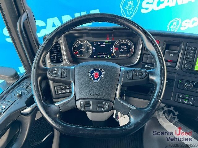 Número de ejes: 2, Configuración: 4x2, Carga útil: 9.493 kg, Tara: 9.107 kg, Peso bruto: 18.600 kg, Capacidad total del depósito: 1.500 litros, Segundo depósito de diésel, Carga de remolque sin freno: 750 kg, Altura de la quinta rueda: 122 cm, Quinta rueda: Fijado, Número de bloqueos: 1, Tipo de suspensión: Todo aire, Tipo de cabina: Highline, Control de velocidad de crucero, Registrador de conducción (dispositivo de control), Tacógrafo digital, Aire acondicionado, Aire acondicionado estacionario, Calefacción estacionaria, Elevalunas eléctricos, Espejos eléctricos, Radio / casete, Color: Blanco, Espejos calefactables, Tipo de iluminación: Lámpara LED, Asistente de mantenimiento de carril, Climatización, Asientos calefactables, Bluetooth, Potencia del motor: 368 kW (493 Hp), Combustible: Diésel, Euro: 6, Tipo de transmisión: Opti-cruise, Marca de la transmisión: Scania, Marchas: 12, Sistema de freno auxiliar, Retarder marca: Scania, Dirección asistida, ABS, ASR, Batería de arranque, Cierre centralizado, Plazas: 2, Disposición de asientos: 1+1, Tapicería: Tela, Ajuste de asiento: Manual